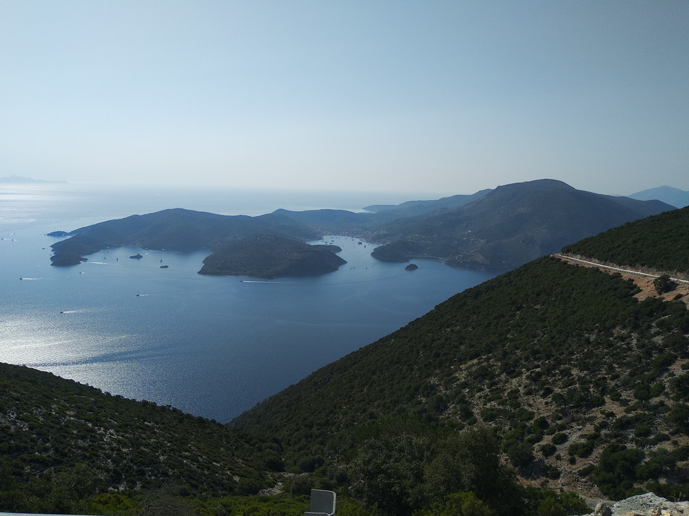 Η επιστροφή μας γίνεται από τον δρόμο στην αριστερή πλευρά του νησιού, και ένεκα το ύψος του βουνού, βλέπεις την θάλασσα ανάμεσα στην Ιθάκη και την Κεφαλλονιά και τον διάπλου, πολλών ιστιοφόρων που τριγυρίζουν στην περιοχή.